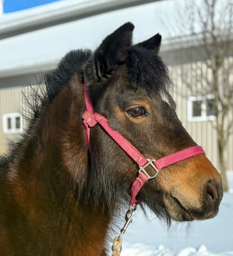 Penelope is a cute moving pony that’s going to make up to be a nice hunter type. She had a late start in life, no fault of her own, but has recently been started under saddle. Riding walk/trot and just started to canter. Has been long lined and lunges, groundwork is done and she’s ready to go forward with a good foundation. She is barefoot and sound, good to groom and tack, turns out with a mixed herd, easy to catch, loads and hauls well. With a little more time Penelope is going to make a super nice riding pony. Offering her now as a reasonable winter project, but price to increase as we’ve finally got her off the back burner and her progress will undoubtedly continue.