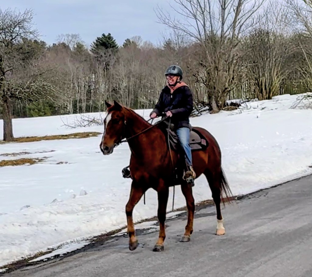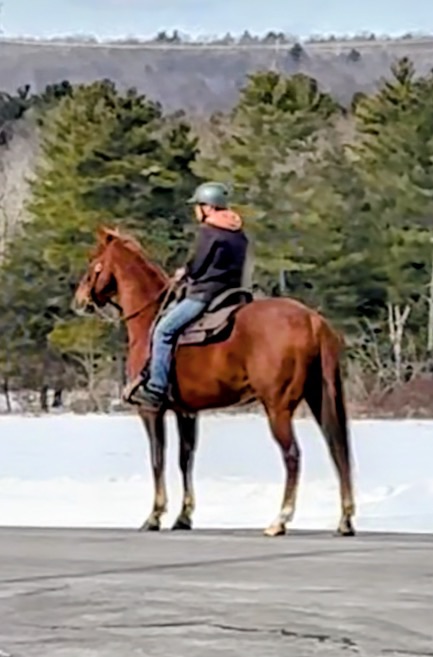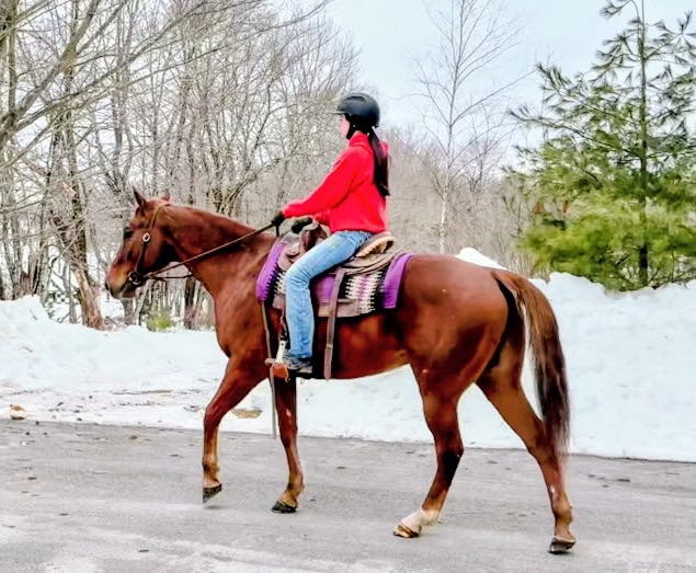 This handsome fella is a current favorite in our barn. He rides nicely around the arena under western or English tack, and absolutely loves to hit the trails too. He’s got a big ground covering stride. Walk/trot/canter in the arena with great breaks and a nice back up. Will also willingly trot a small jump and has potential for more. Out on the trails, Amarillo is brave enough to lead or head out on his own, but also happy to follow other horses. He likes his friends and gets along well with every horse we have put him near. Amarillo currently wears front shoes. He turns out in a group of geldings and gets along well. This horse is well mannered, easy to have in the barn, and just an all around cool guy. We love him and think he can do just about any job.