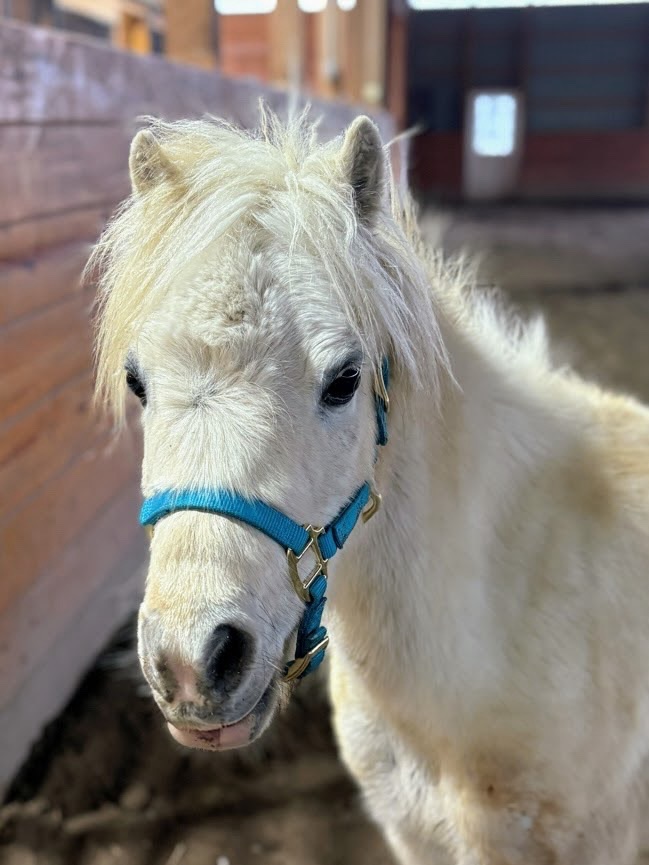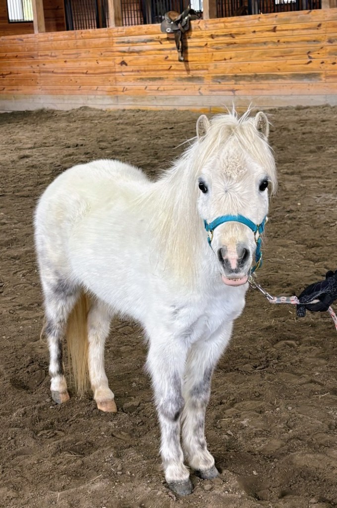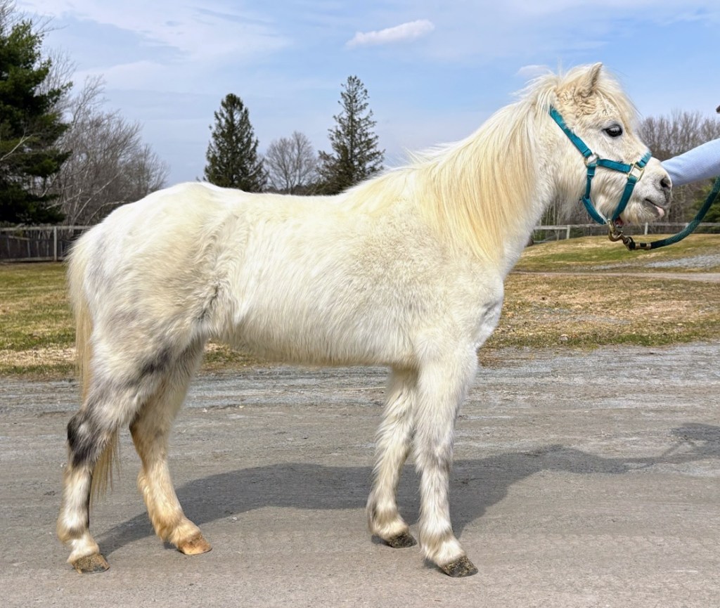This is a pretty pony that’s got some pizazz! Gem is cute as a button and loves attention. She either wants a human that will give her lots of loving, or to be with another horse or pony as a companion. Gem has been a companion most of her life. She leads well, ties, picks up her feet, and trailers, but has not been started to ride or drive yet. She can be on the antsy side and will dance around, but settles with time and attention. Has an underbite, but it doesn’t stop her from eating just fine. She would make a great companion, pet, or project to bring along as she is still young and likes working on the ground with our lesson kids.
